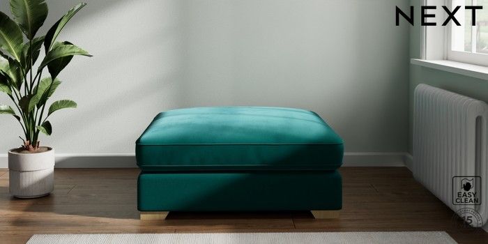 7.2.6 Buy Stamford Grand Relaxed Sit Extra Large Footstool Plush Velvet Easy Clean Juniper Green Square Angle - Light from the Next UK online shop Click here to use our accessible website