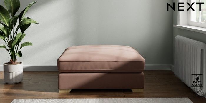 7.2.6 Buy Stamford Grand Relaxed Sit Extra Large Footstool Plush Velvet Easy Clean Mid Natural Square Angle - Light from the Next UK online shop Click here to use our accessible website