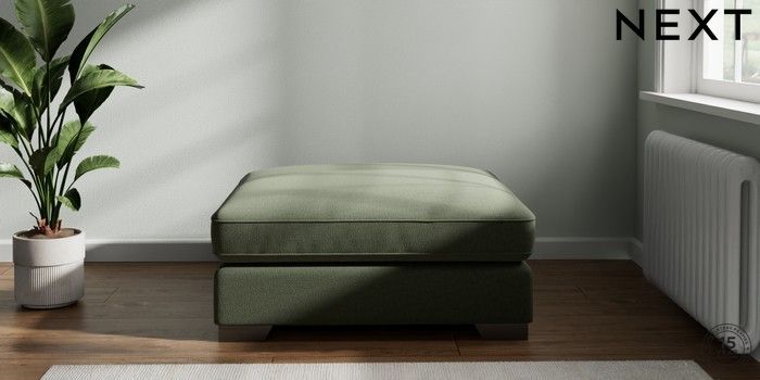 7.2.6 Buy Stamford Grand Relaxed Sit Extra Large Footstool Relaxed Linen Look Dark Green Square Angle - Gunmetal from the Next UK online shop Click here to use our accessible website