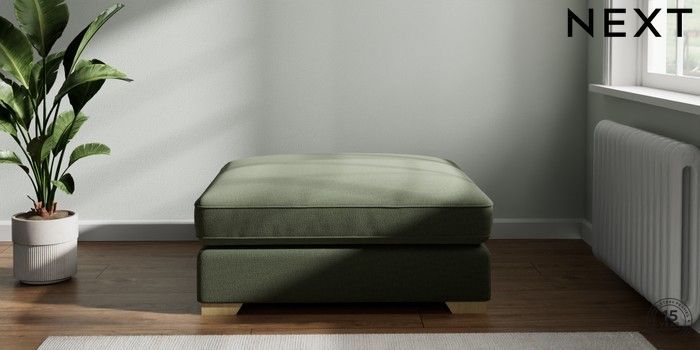 7.2.6 Buy Stamford Grand Relaxed Sit Extra Large Footstool Relaxed Linen Look Dark Green Square Angle - Light from the Next UK online shop Click here to use our accessible website