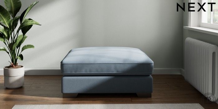 7.2.6 Buy Stamford Grand Relaxed Sit Extra Large Footstool Relaxed Linen Look Mid Blue Square Angle - Gunmetal from the Next UK online shop Click here to use our accessible website