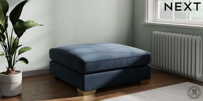 7.3.1 Buy Stamford Grand Relaxed Sit Extra Large Footstool Ripple Chenille Dark Blue Square Angle - Brushed Brass from the Next UK online shop