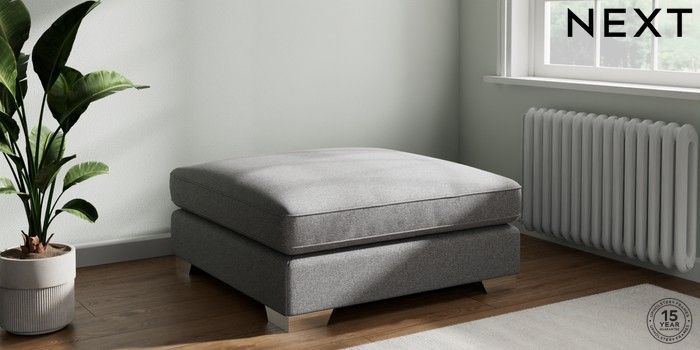 7.3.1 Buy Stamford Grand Relaxed Sit Extra Large Footstool Studio Chenille Mid Grey Square Angle - Chrome Metal from the Next UK online shop