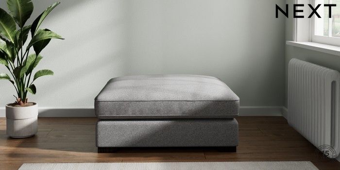 7.2.6 Buy Stamford Grand Relaxed Sit Extra Large Footstool Studio Chenille Mid Grey Square Angle - Dark from the Next UK online shop Click here to use our accessible website