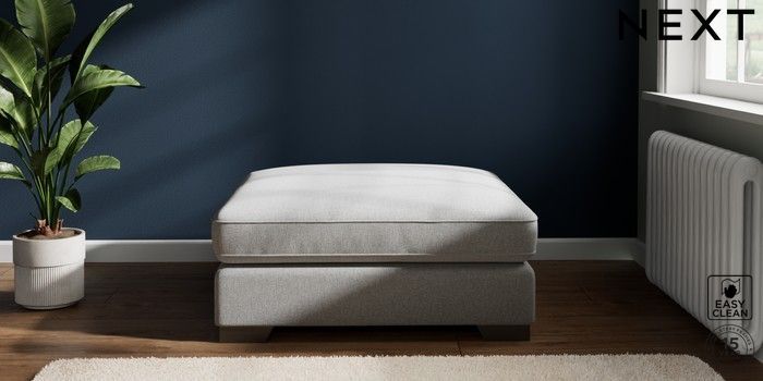 7.2.6 Buy Stamford Grand Relaxed Sit Extra Large Footstool Tweedy Blend Easy Clean Light Silver Grey Square Angle - Gunmetal from the Next UK online shop Click here to use our accessible website