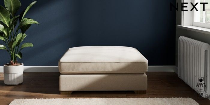 7.2.6 Buy Stamford Grand Relaxed Sit Extra Large Footstool Tweedy Blend Easy Clean Oyster Square Angle - Mid from the Next UK online shop Click here to use our accessible website