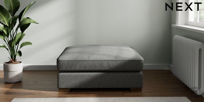7.2.6 Buy Stamford Grand Relaxed Sit Extra Large Footstool Tweedy Chenille Dark Grey Square Angle - Mid from the Next UK online shop Click here to use our accessible website
