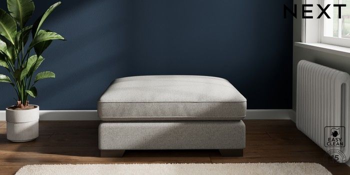 7.2.6 Buy Stamford Grand Relaxed Sit Extra Large Footstool Woven Chenille Easy Clean Light Grey Square Angle - Gunmetal from the Next UK online shop Click here to use our accessible website