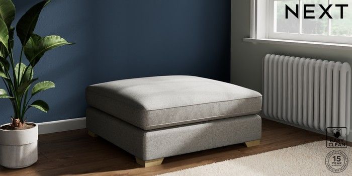 7.3.1 Buy Stamford Grand Relaxed Sit Extra Large Footstool Woven Chenille Easy Clean Light Grey Square Angle - Light from the Next UK online shop