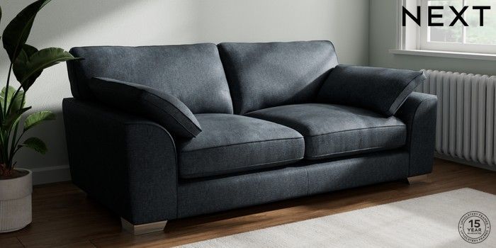 6.12.1 Buy Stamford Grand Relaxed Sit Large Corner Chaise - Left Hand Plush Chenille Slate Blue Large Square Angle - Chrome Metal from the Next UK online shop Click here to use our accessible website