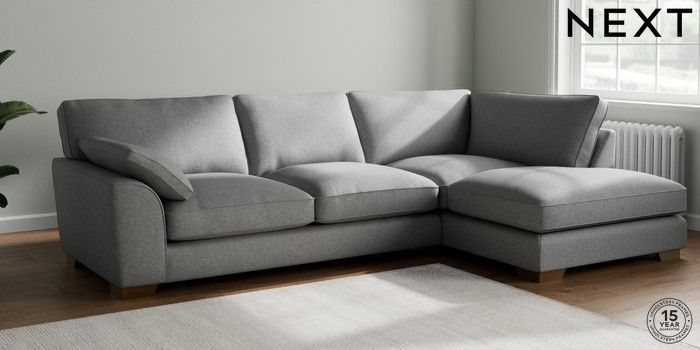 7.2.10 Buy Stamford Grand Relaxed Sit Large Corner Chaise - Right Hand Chunky Weave Mid Grey Large Square Angle - Brushed Brass from the Next UK online shop Click here to use our accessible website