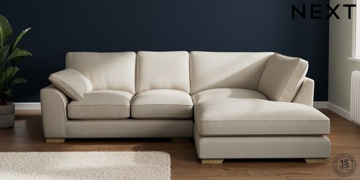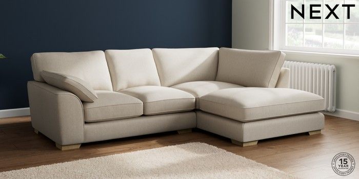 7.3.1 Buy Stamford Grand Relaxed Sit Medium Corner Chaise - Right Hand Tweedy Chenille Oyster Large Square Angle - Light from the Next UK online shop Click here to use our accessible website
