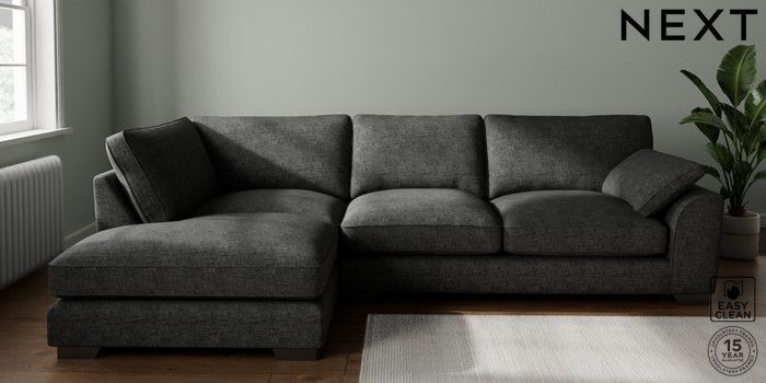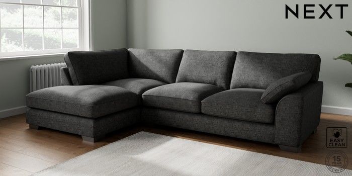 7.3.1 Buy Stamford Grand Relaxed Sit Large Corner Chaise - Left Hand Boucle Weave Easy Clean Charcoal Grey Large Square Angle - Gunmetal from the Next UK online shop Click here to use our accessible website