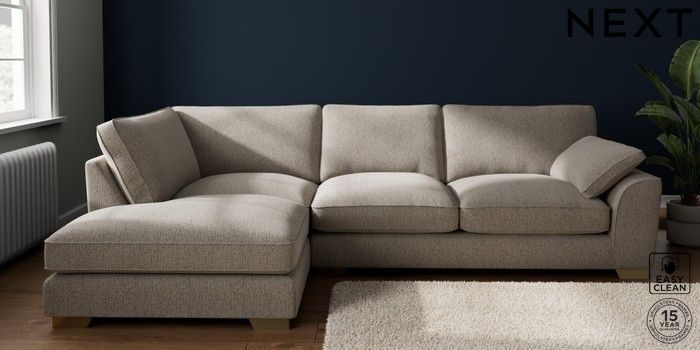 7.3.1 Buy Stamford Grand Relaxed Sit Large Corner Chaise - Left Hand Chunky Boucle Easy Clean Dove Large Square Angle - Brushed Brass from the Next UK online shop Click here to use our accessible website