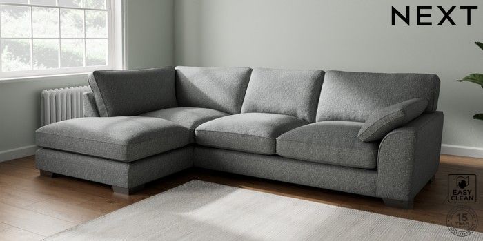 7.3.1 Buy Stamford Grand Relaxed Sit Large Corner Chaise - Left Hand Chunky Boucle Easy Clean Mid Grey Large Square Angle - Gunmetal from the Next UK online shop Click here to use our accessible website