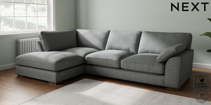 7.3.1 Buy Stamford Grand Relaxed Sit Large Corner Chaise - Left Hand Chunky Boucle Easy Clean Mid Grey Large Square Angle - Mid from the Next UK online shop Click here to use our accessible website