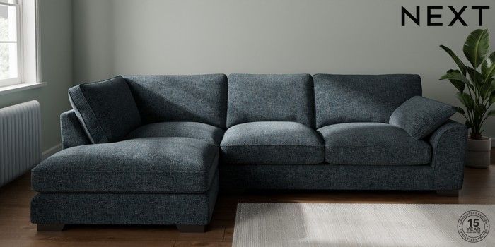 7.3.1 Buy Stamford Grand Relaxed Sit Large Corner Chaise - Left Hand Chunky Chenille Dark Navy Blue Large Square Angle - Gunmetal from the Next UK online shop Click here to use our accessible website