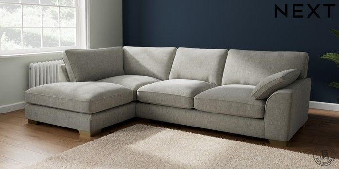 7.2.10 Buy Stamford Grand Relaxed Sit Large Corner Chaise - Left Hand Chunky Chenille Light Grey Large Square Angle - Brushed Brass from the Next UK online shop Click here to use our accessible website