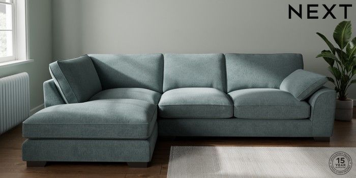 7.3.1 Buy Stamford Grand Relaxed Sit Large Corner Chaise - Left Hand Chunky Chenille Light Teal Green Large Square Angle - Gunmetal from the Next UK online shop Click here to use our accessible website