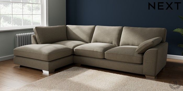 7.3.1 Buy Stamford Grand Relaxed Sit Large Corner Chaise - Left Hand Chunky Marl Light Olive Green Large Square Angle - Chrome Metal from the Next UK online shop Click here to use our accessible website
