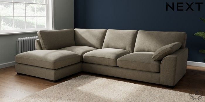 7.3.1 Buy Stamford Grand Relaxed Sit Large Corner Chaise - Left Hand Chunky Marl Light Olive Green Large Square Angle - Dark from the Next UK online shop Click here to use our accessible website