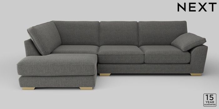 6.6.2 Buy Stamford Grand Relaxed Sit Large Corner Chaise - Left Hand Chunky Texture Dark Grey Large Square Angle - Brushed Brass from the Next UK online shop Click here to use our accessible website