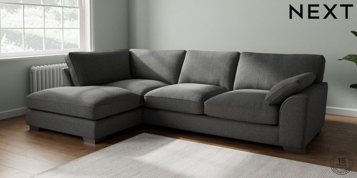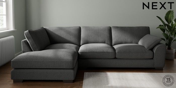 7.3.1 Buy Stamford Grand Relaxed Sit Large Corner Chaise - Left Hand Chunky Texture Dark Grey Large Square Angle - Gunmetal from the Next UK online shop Click here to use our accessible website
