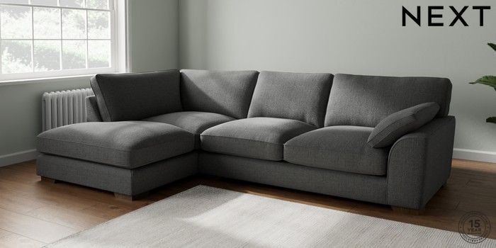7.2.10 Buy Stamford Grand Relaxed Sit Large Corner Chaise - Left Hand Chunky Texture Dark Grey Large Square Angle - Mid from the Next UK online shop Click here to use our accessible website