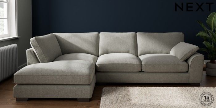7.3.1 Buy Stamford Grand Relaxed Sit Large Corner Chaise - Left Hand Chunky Texture Dove Large Square Angle - Gunmetal from the Next UK online shop Click here to use our accessible website