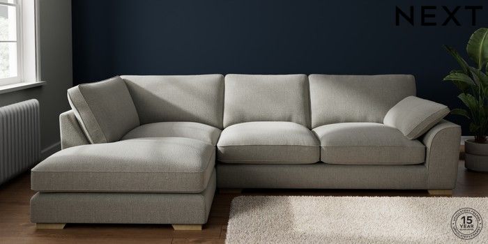 7.3.1 Buy Stamford Grand Relaxed Sit Large Corner Chaise - Left Hand Chunky Texture Dove Large Square Angle - Light from the Next UK online shop Click here to use our accessible website