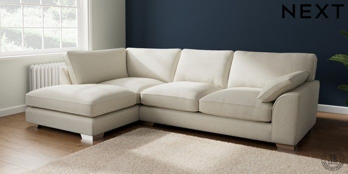 7.3.1 Buy Stamford Grand Relaxed Sit Large Corner Chaise - Left Hand Chunky Texture Oyster Large Square Angle - Chrome Metal from the Next UK online shop Click here to use our accessible website