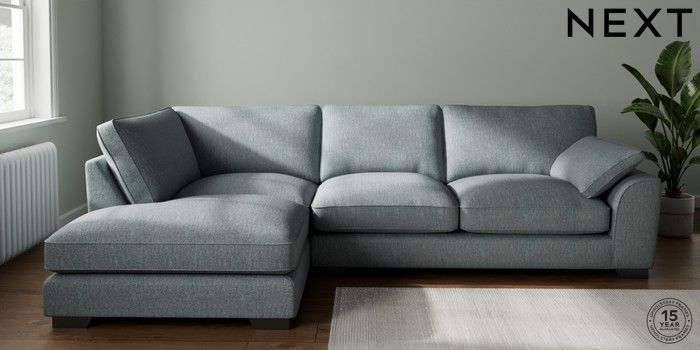 7.3.1 Buy Stamford Grand Relaxed Sit Large Corner Chaise - Left Hand Chunky Weave Mid Blue Large Square Angle - Gunmetal from the Next UK online shop Click here to use our accessible website