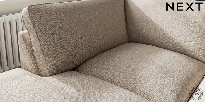 7.3.1 Buy Stamford Grand Relaxed Sit Large Corner Chaise - Left Hand Chunky Weave Mid Natural Large Square Angle - Brushed Brass from the Next UK online shop Click here to use our accessible website