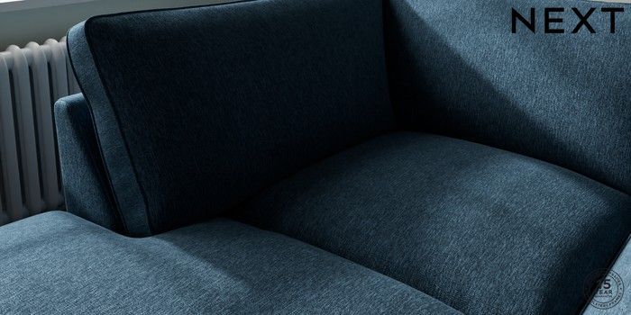 7.3.1 Buy Stamford Grand Relaxed Sit Large Corner Chaise - Left Hand Cotswold Chenille Dark Blue Large Square Angle - Brushed Brass from the Next UK online shop Click here to use our accessible website
