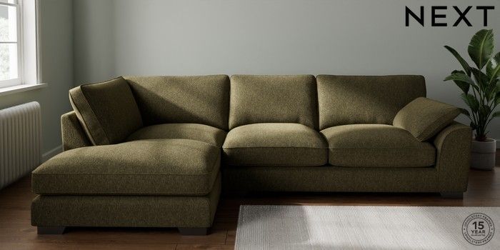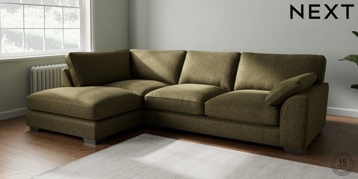 7.3.1 Buy Stamford Grand Relaxed Sit Large Corner Chaise - Left Hand Cotswold Chenille Dark Green Large Square Angle - Gunmetal from the Next UK online shop Click here to use our accessible website