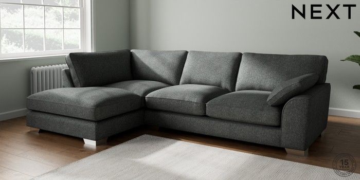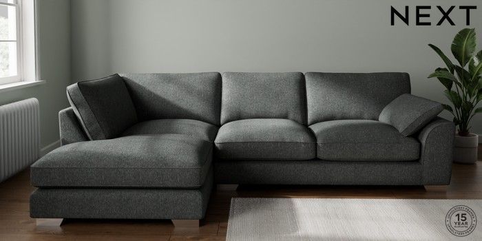 7.3.1 Buy Stamford Grand Relaxed Sit Large Corner Chaise - Left Hand Cotswold Chenille Dark Grey Large Square Angle - Chrome Metal from the Next UK online shop Click here to use our accessible website