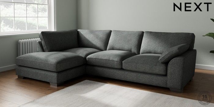 7.3.1 Buy Stamford Grand Relaxed Sit Large Corner Chaise - Left Hand Cotswold Chenille Dark Grey Large Square Angle - Gunmetal from the Next UK online shop Click here to use our accessible website