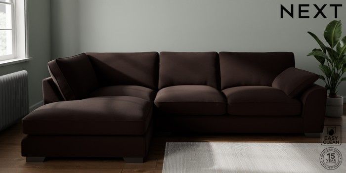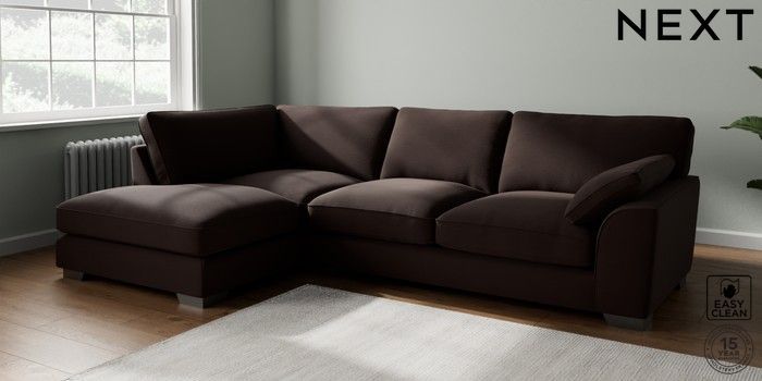 7.3.1 Buy Stamford Grand Relaxed Sit Large Corner Chaise - Left Hand Fine Chenille Easy Clean Chocolate Brown Large Square Angle - Gunmetal from the Next UK online shop Click here to use our accessible website