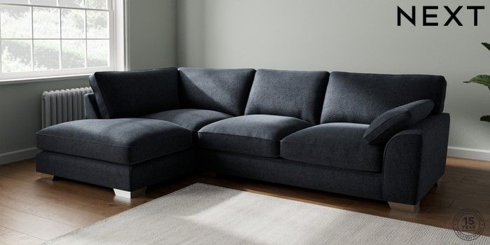 7.3.1 Buy Stamford Grand Relaxed Sit Large Corner Chaise - Left Hand Boucle Chenille Dark Slate Blue Large Square Angle - Chrome Metal from the Next UK online shop Click here to use our accessible website