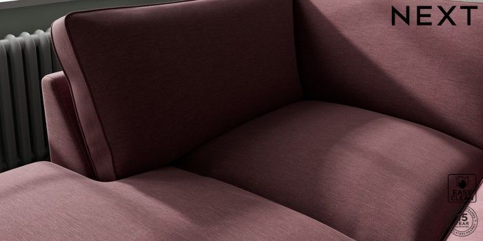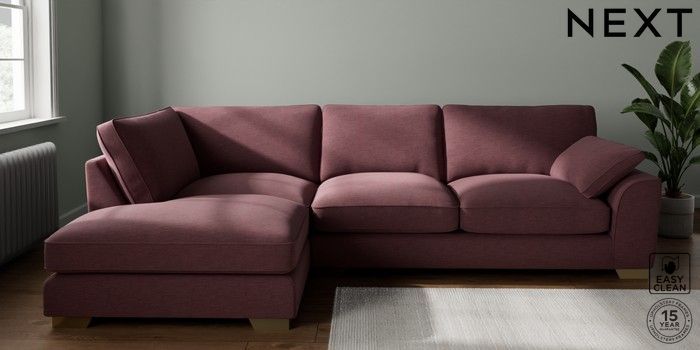 7.3.1 Buy Stamford Grand Relaxed Sit Large Corner Chaise - Left Hand Fine Chenille Easy Clean Mid Mulberry Purple Large Square Angle - Brushed Brass from the Next UK online shop Click here to use our accessible website