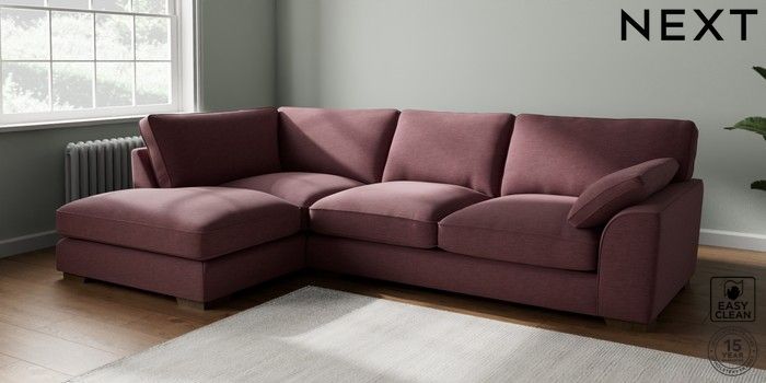 7.3.1 Buy Stamford Grand Relaxed Sit Large Corner Chaise - Left Hand Fine Chenille Easy Clean Mid Mulberry Purple Large Square Angle - Mid from the Next UK online shop Click here to use our accessible website