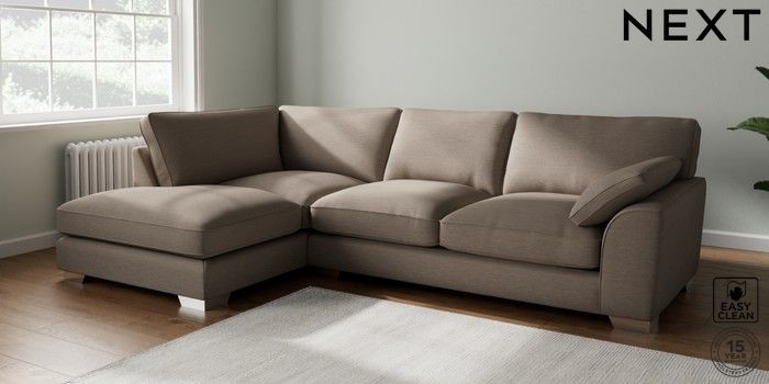 7.3.1 Buy Stamford Grand Relaxed Sit Large Corner Chaise - Left Hand Fine Chenille Easy Clean Mid Taupe Brown Large Square Angle - Chrome Metal from the Next UK online shop Click here to use our accessible website