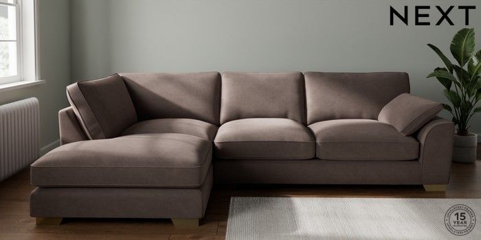 7.3.1 Buy Stamford Grand Relaxed Sit Large Corner Chaise - Left Hand Luxe Chenille Mink Brown Large Square Angle - Brushed Brass from the Next UK online shop Click here to use our accessible website