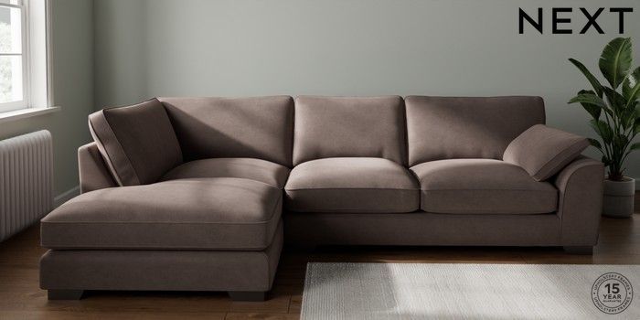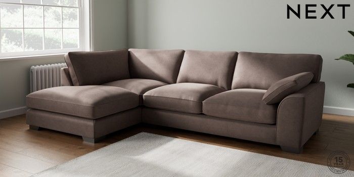 7.3.1 Buy Stamford Grand Relaxed Sit Large Corner Chaise - Left Hand Luxe Chenille Mink Brown Large Square Angle - Gunmetal from the Next UK online shop Click here to use our accessible website