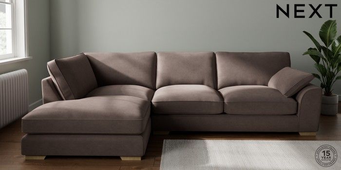 6.12.1 Buy Stamford Grand Relaxed Sit Large Corner Chaise - Left Hand Luxe Chenille Mink Brown Large Square Angle - Light from the Next UK online shop Click here to use our accessible website