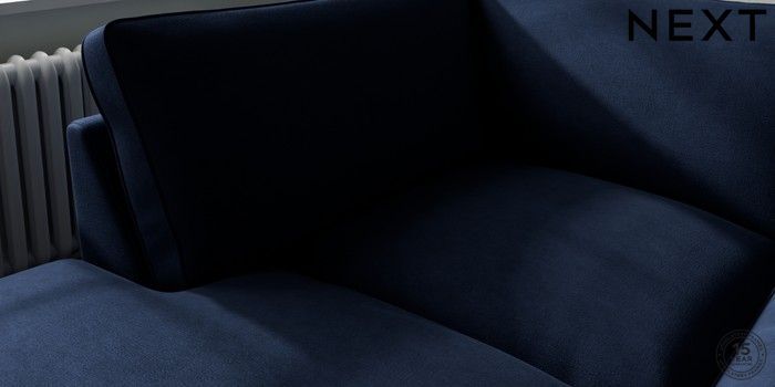 7.3.1 Buy Stamford Grand Relaxed Sit Large Corner Chaise - Left Hand Luxe Chenille Navy Blue Large Square Angle - Gunmetal from the Next UK online shop Click here to use our accessible website