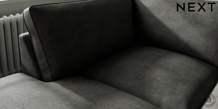 7.3.1 Buy Stamford Grand Relaxed Sit Large Corner Chaise - Left Hand Monza Faux Leather Easy Clean Dark Grey Large Square Angle - Brushed Brass from the Next UK online shop Click here to use our accessible website