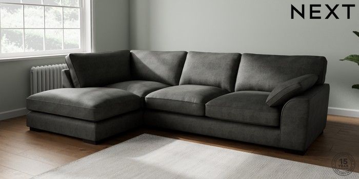 7.3.1 Buy Stamford Grand Relaxed Sit Large Corner Chaise - Left Hand Monza Faux Leather Easy Clean Dark Grey Large Square Angle - Dark from the Next UK online shop Click here to use our accessible website