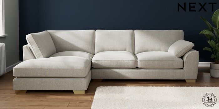 7.3.1 Buy Stamford Grand Relaxed Sit Large Corner Chaise - Left Hand Multi Weave Light Blue Large Square Angle - Brushed Brass from the Next UK online shop