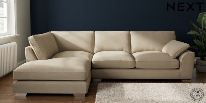 7.3.1 Buy Stamford Grand Relaxed Sit Large Corner Chaise - Left Hand Natural Mix Light Natural Large Square Angle - Chrome Metal from the Next UK online shop Click here to use our accessible website